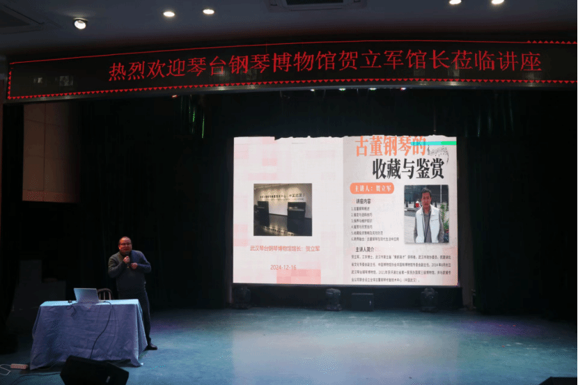 据悉,此次讲座由中国地质大学地质工程专业博士毕业生、武汉市第五届“黄鹤英才”获得者、武汉市政协委员、民建湖北省文化专委会副主任、中国博物馆协会非国有博物馆专委会副主任贺立军主讲。他在2014年8月创立了武汉琴台钢琴博物馆。此馆于2021年获评湖北省第一家民办国家三级博物馆,并与欧美专业公司联合设立全球古董钢琴修复技术中心。