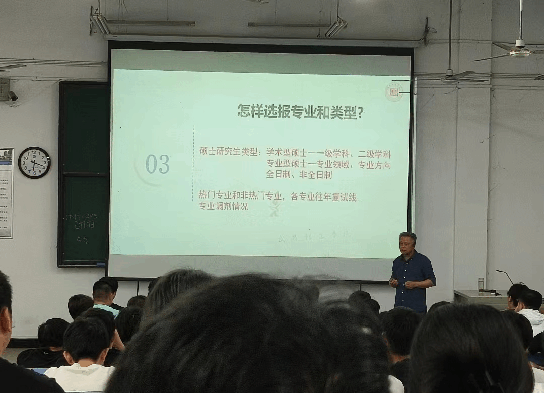 随后,素导付燕结合当前的考研背景,指导学生根据自身实际情况和目标学校分数线,综合考量时间与精力的性价比,合理选择目标院校。并结合自身的经历,详细讲解了备考过程中需要注意的问题,包括如何制定复习计划、如何提高学习效率、如何调整心态等。素导付燕的分享让在场的学生们受益匪浅。