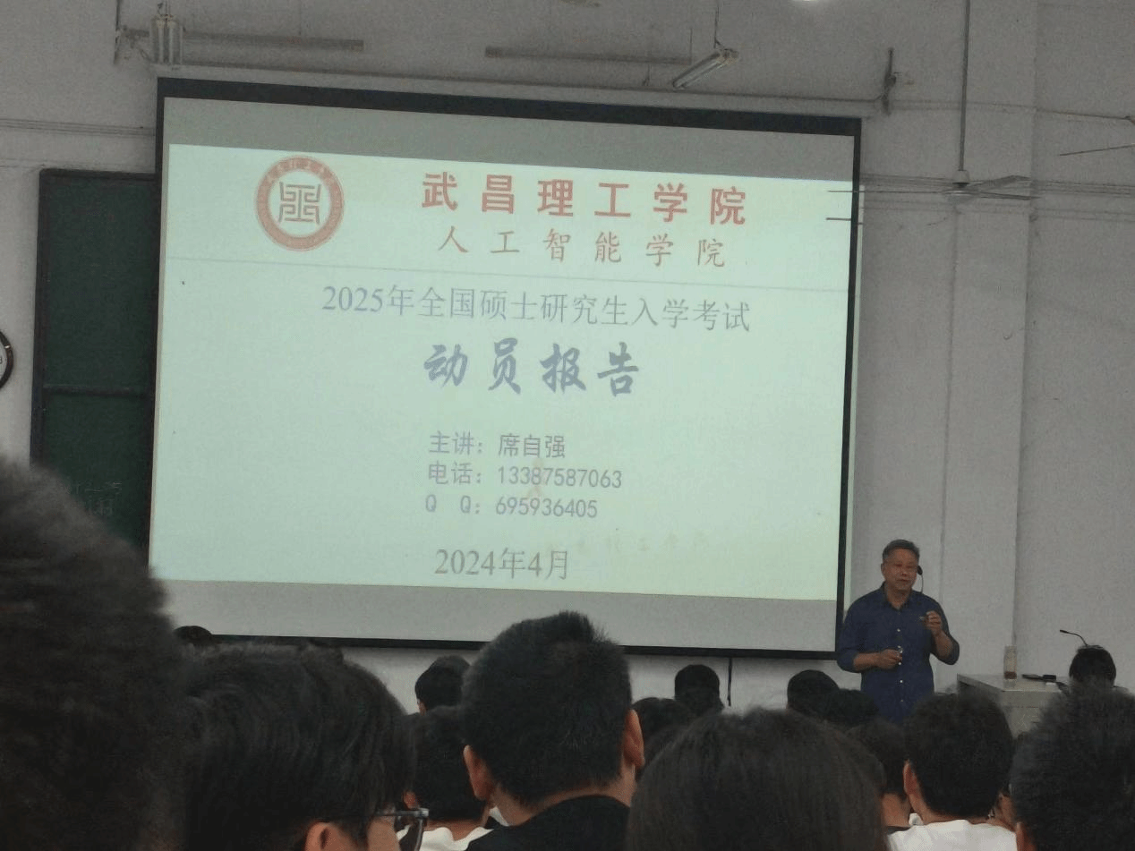 人工智能学院5月6日消息(通讯员 刘蕾 董俊逸 报道)为进一步加强学风建设,全面调动2021届学生的考研积极性,明确考研目标、增强考研信心、提升考研竞争力,5月6日,武昌理工学院人工智能学院于智能319和320教室开展21级全体本科学生考研动员大会,出席的领导有人工智能学院席自强院长、素导付燕及21级全体本科学生。