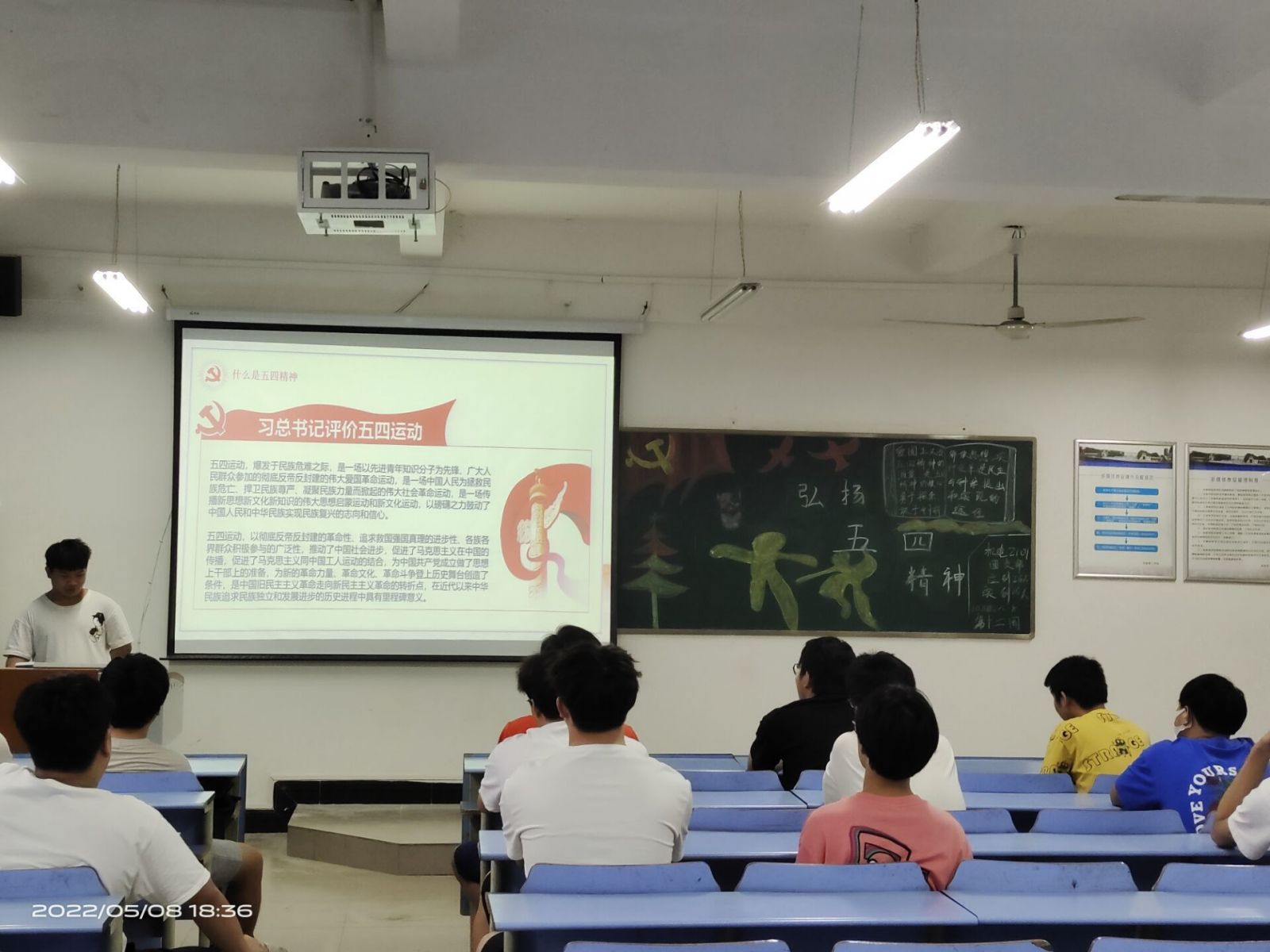 本次主题班会由各班团支书主持开展。班会伊始,各班团支书组织同学们学习中国共青团团史,回顾中国共青团的百年奋斗建功新时代。随后,团支书带领同学重温五四运动,探讨五四精神的精神内涵及其深刻含义,同学们积极投入讨论当中,发表自己对五四运动的历史意义的见解以及作为新时代青年学生我们如何弘扬五四精神,在未来的学习生活中具体该怎样做。最后,各班团支书总结道:“五四运动,是一批先进青年和知识分子为先锋、广大人民群众参加反帝反封建的伟大爱国主义运动,也是一场伟大的思想解放运动和新文化运动。今天,五四精神的火炬已经传到我们这一代青年手里。要珍惜当下,用青春作桨、以梦想为帆,把奋斗作为最靓丽的青春底色,在火热的青春中放飞人生梦想。”