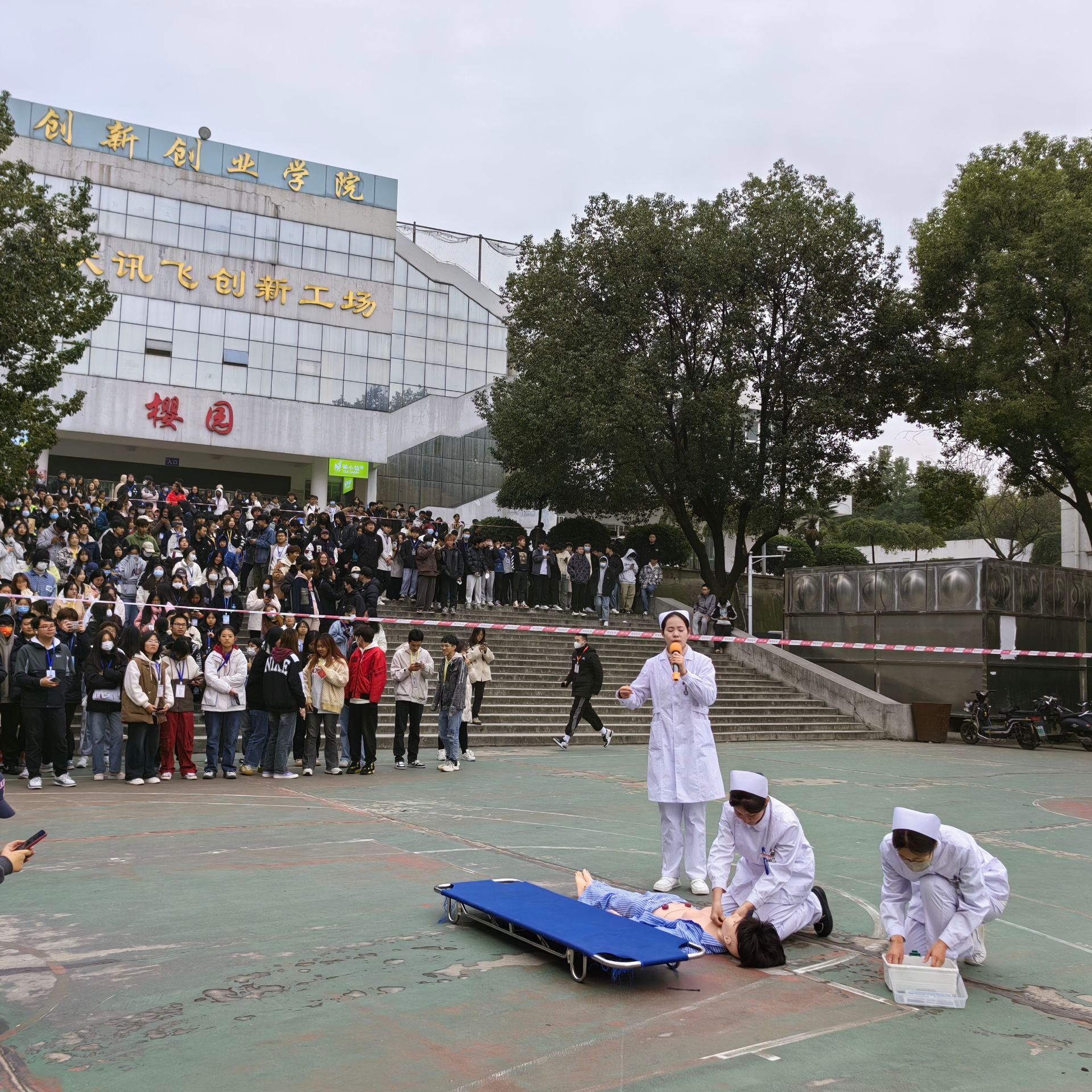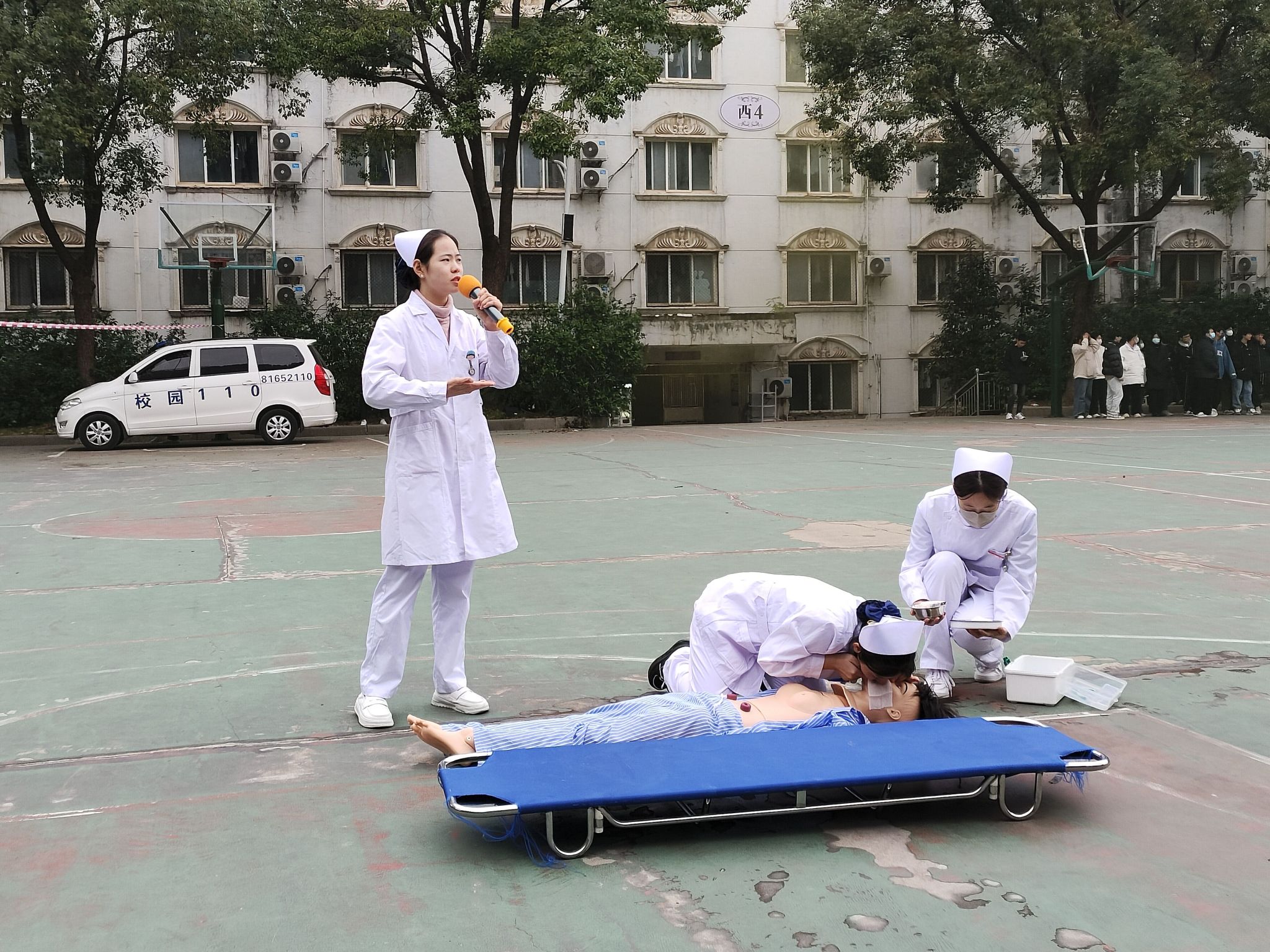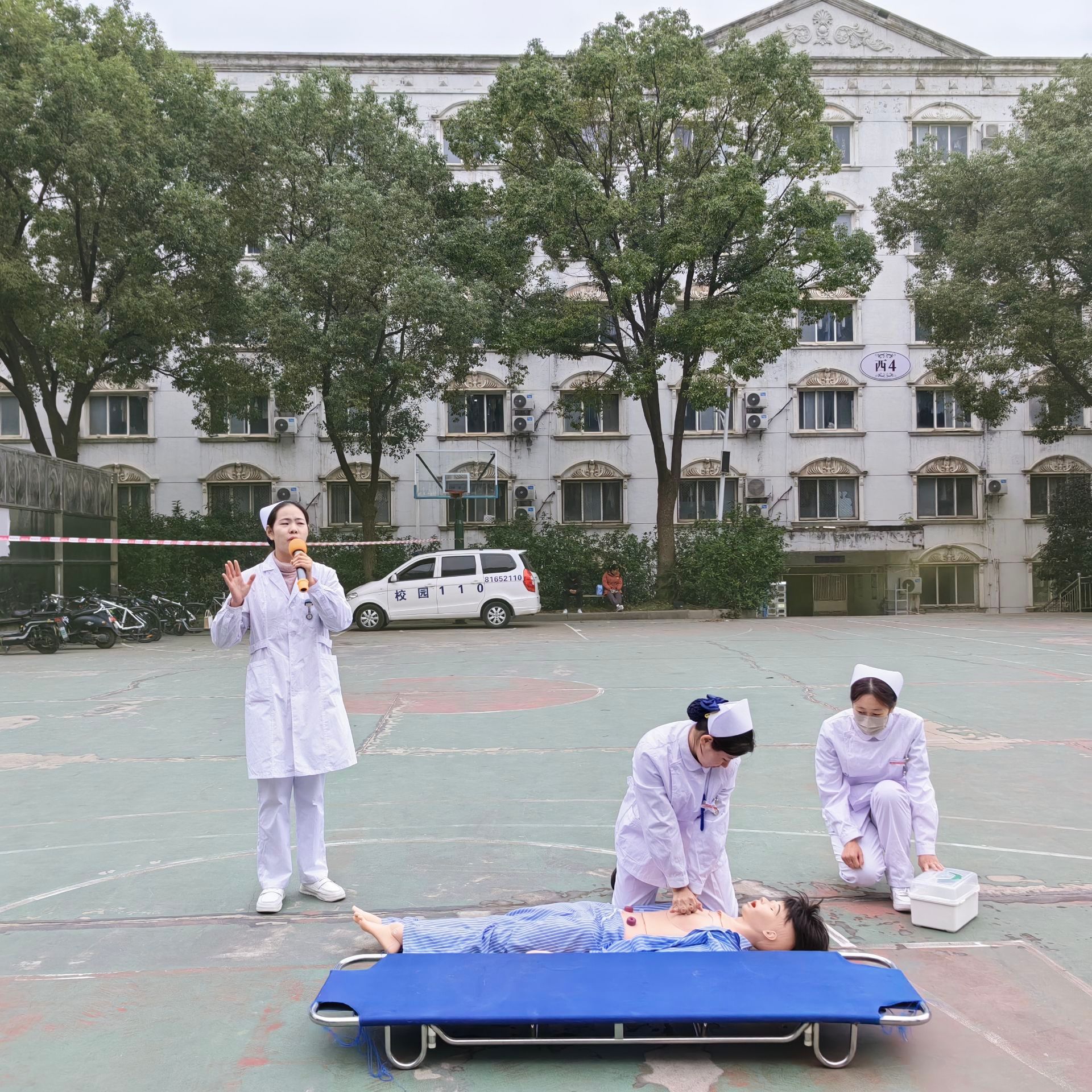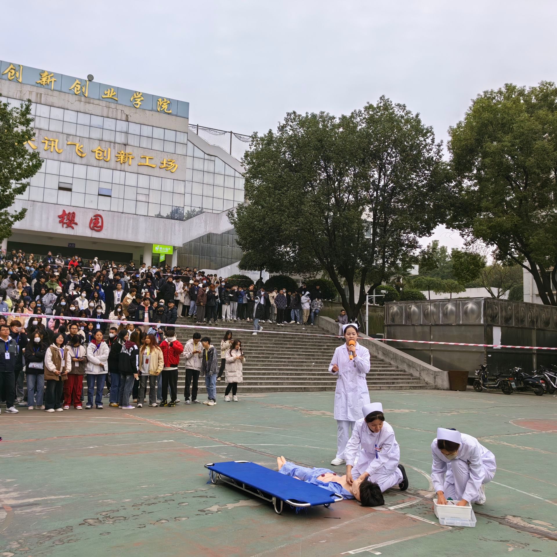 团委网11月14日消息(通讯员 杨扬 报道)为进一步丰富学生应急救护知识,提高学生在日常生活中、防火及逃生自救互救意识的意识和能力,完善校园防火措施,预防火灾发生,从而减少、避免因火灾而造成的伤害事件发生,最大限度的保证学生安全。武昌理工学院校宿舍管理委员会、保卫处、江夏区消防大队于2023年11月13日下午14:00在樱园篮球场举办消防演练,健康与护理学院医学协会受邀参加并演练心肺复苏。