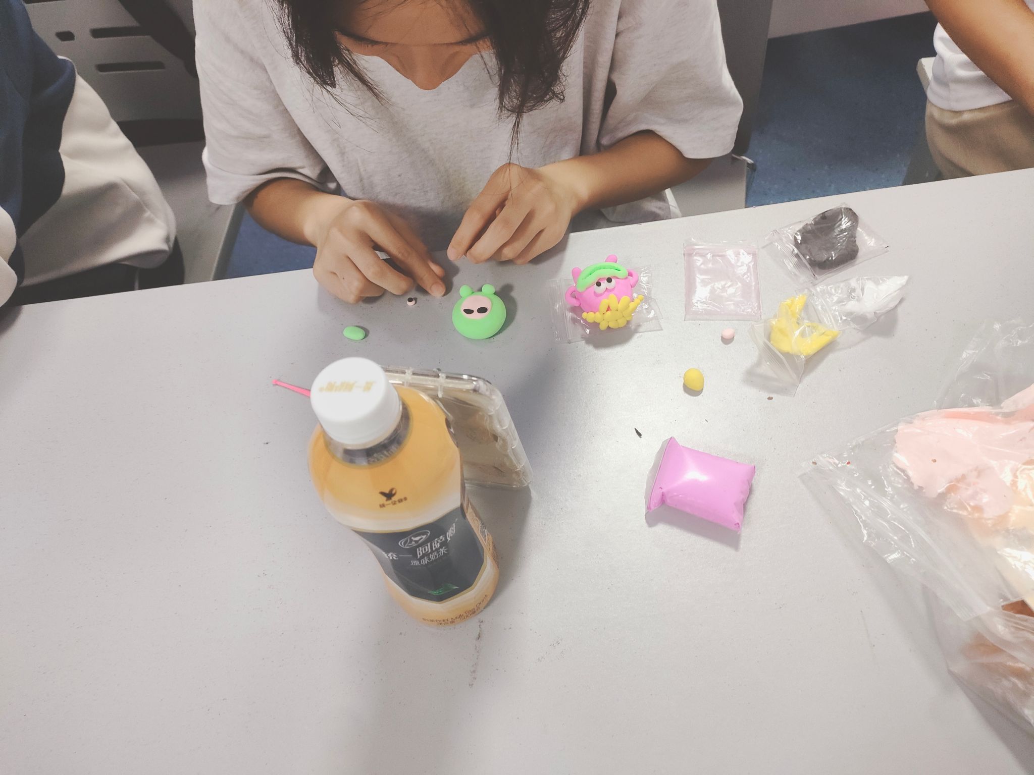 活动开始前,社团相关负责人员提前将活动时间地点以及其他注意事项编辑完毕发布通知,将活动材料备好,统计到场人数。随后强调活动秩序,对活动主旨做出讲解,在活跃了现场氛围后分发粘土材料。社团成员十分积极。在遵循活动秩序的同时,社团成员表现出了对制作粘土的兴趣,他们大胆的发挥想象,用现有的材料做出了各有特点的成品。有跌落的哆啦A梦,黄色的流星花,枯树下的笑脸南瓜,粉红色小猪,通身发黄的皮卡丘,棕色小熊等富有想象力的独特产品。在制作过程中,社员们也遇到了很多问题。他们耐心解决,孜孜不倦,运用自己的大脑解决问题。也获得了相关经验,在接下来的社团活动中他们对于粘土制作也有了自己的见解,也对接下来活动的开展流程相应的准备和理解,在活动过程中,社团成员遵守纪律,也在制作过程中收获了成就感和自信心,他们相信在他们的努力下,一切事物都会变得美好起来,就像是一袋黏土在他们手中变成一朵花,也让他们更有信心以积极向上的态度面对接下的校园乃至社会生活。