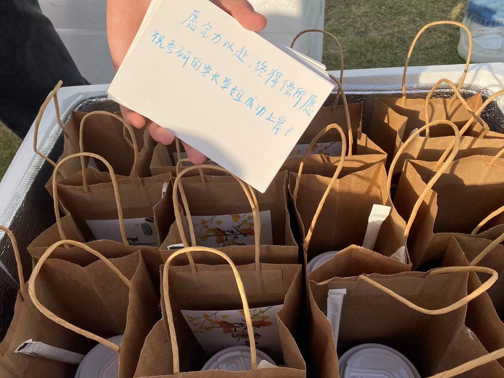 活动开展后,考研学子和学院同学们都热情参与其中。同学们纷纷送上祝福语,祝福考研学子在最后关键时刻能路心神气定,沉者应考,稳扎稳打,坚持到底,成功上岸,用最好的心态成就最好的成绩;而健康与护理学院23级的同学也为考研学子们准备了十分用心的手绘祝福,希望可以通过涂鸦、书信与明信片,送出他们的祝福:万事胜意,超常发挥,考研成功,也让考研同学感受温暖、舒缓;Wakanda瓦坎达咖啡庙山中商店更加贴心的为考生们送上了温暖的咖啡,希望有这杯咖啡能让他们在萧瑟的冷风中,让他们在冬日里感受到温暖,激励自我,调整心态,树立信心,清晰目标,奋勇向前。