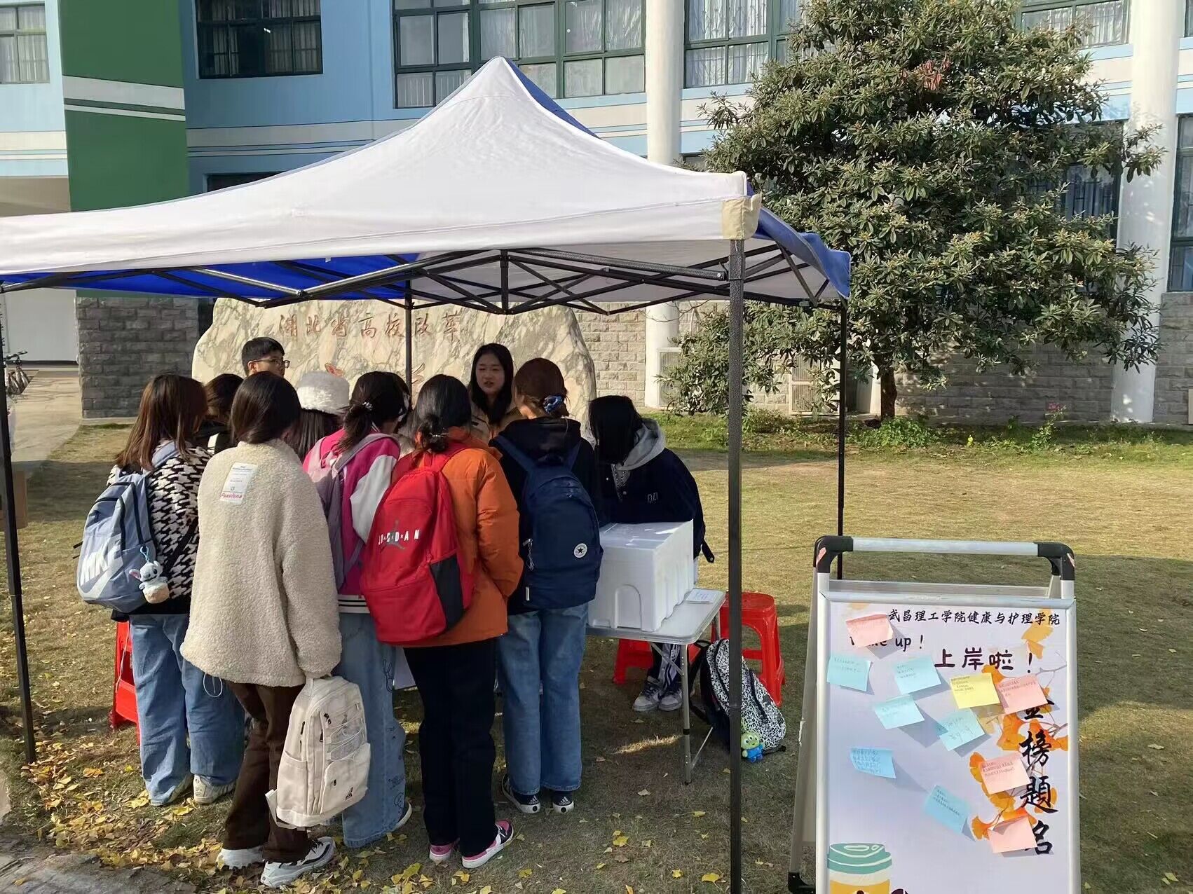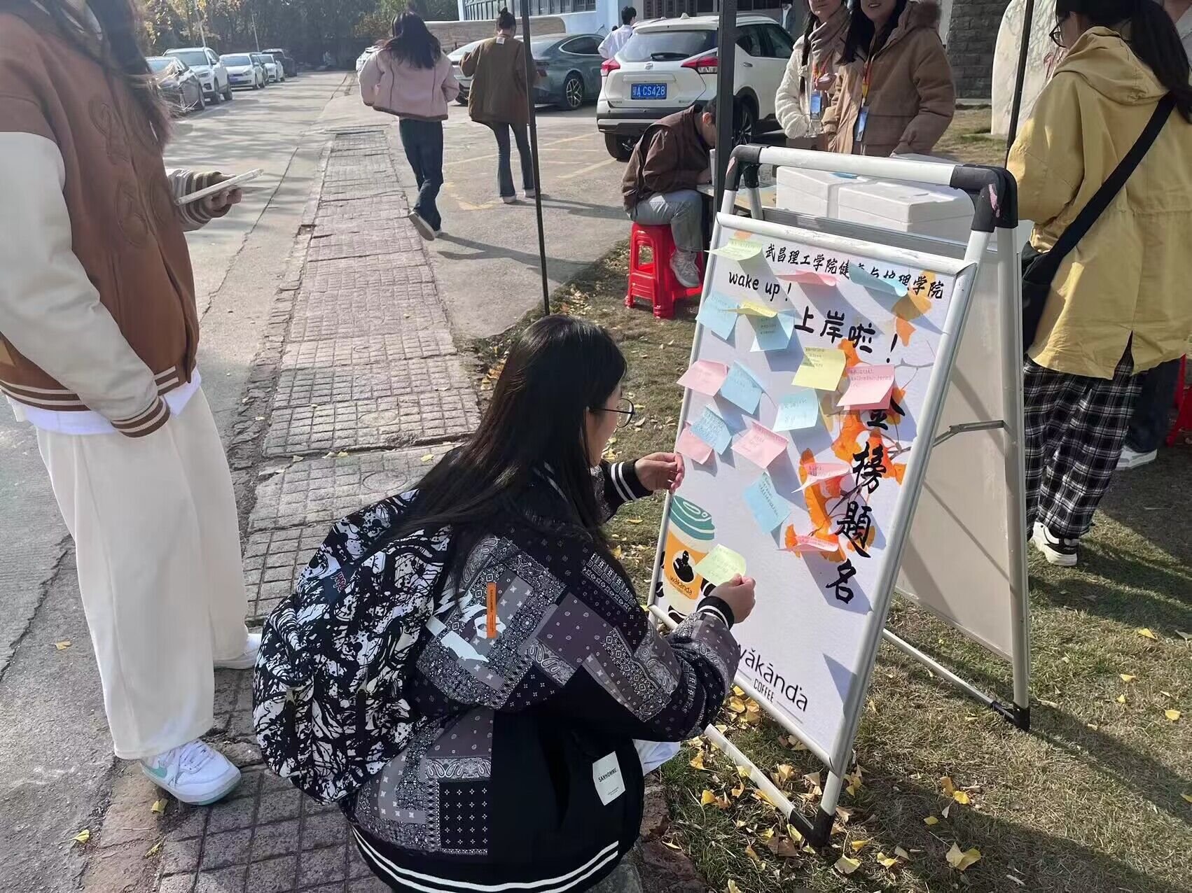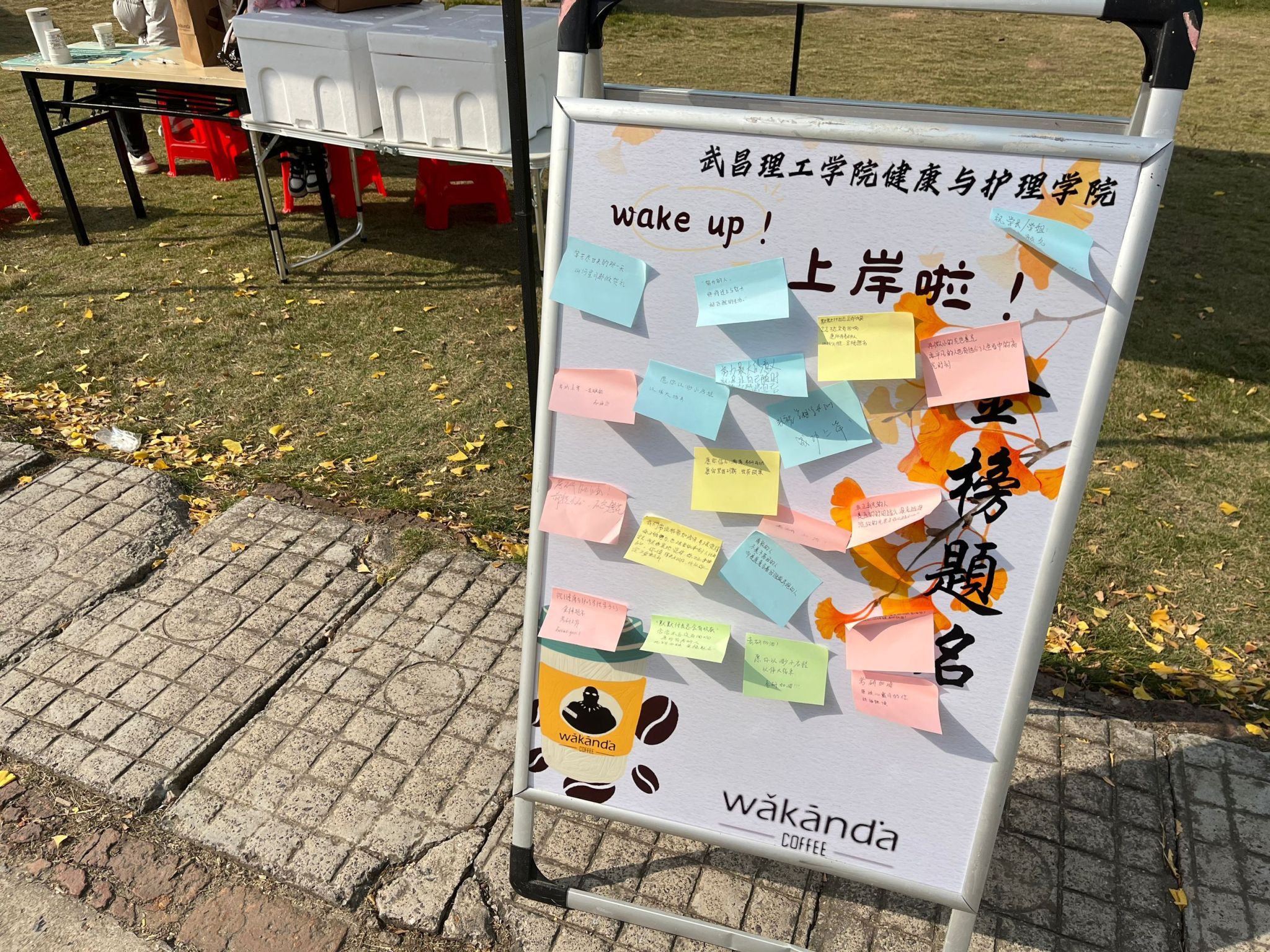 团委网11月24日消息(通讯员 陈诗 报道 陈瑶 摄影)随着寒流的到来,武汉已经迎来了数次降温,距离考研仅剩一个月的时间。但在汤逊湖畔梅南山下的校园中,依旧是一片火热。为激励莘莘考研学子勇于拼搏、敢于奋斗的精神,营造有利于学生健康成长的校园氛围,武昌理工学院健康与护理学院外宣部、活动策划部和Wakanda 瓦坎达咖啡一同于2023年11月24日上午8:00至11:00在健康与护理学院门口设定温暖帐篷举行了“wake up!上岸啦!”——2023年考研送温暖活动。参与此次活动的人员有健康与护理学院全体考研学子,以及为考研学子送上祝福的同学们。