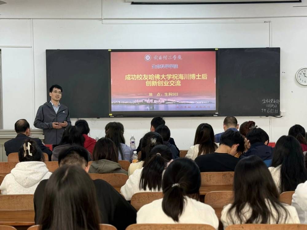 中南在线11月29日消息(通讯员 朱紫颜 摄影 方艳丽 报道)2024年11月16日,为了激发生命科学学院学子们的创新意识,鼓励学生勇敢地追求自己的想法,让他们看到未来的更多可能性。武昌理工学院生命科学学院邀请成功校友哈佛大学祝海川博士后在生命科学学院508教室开展了创新创业交流会。