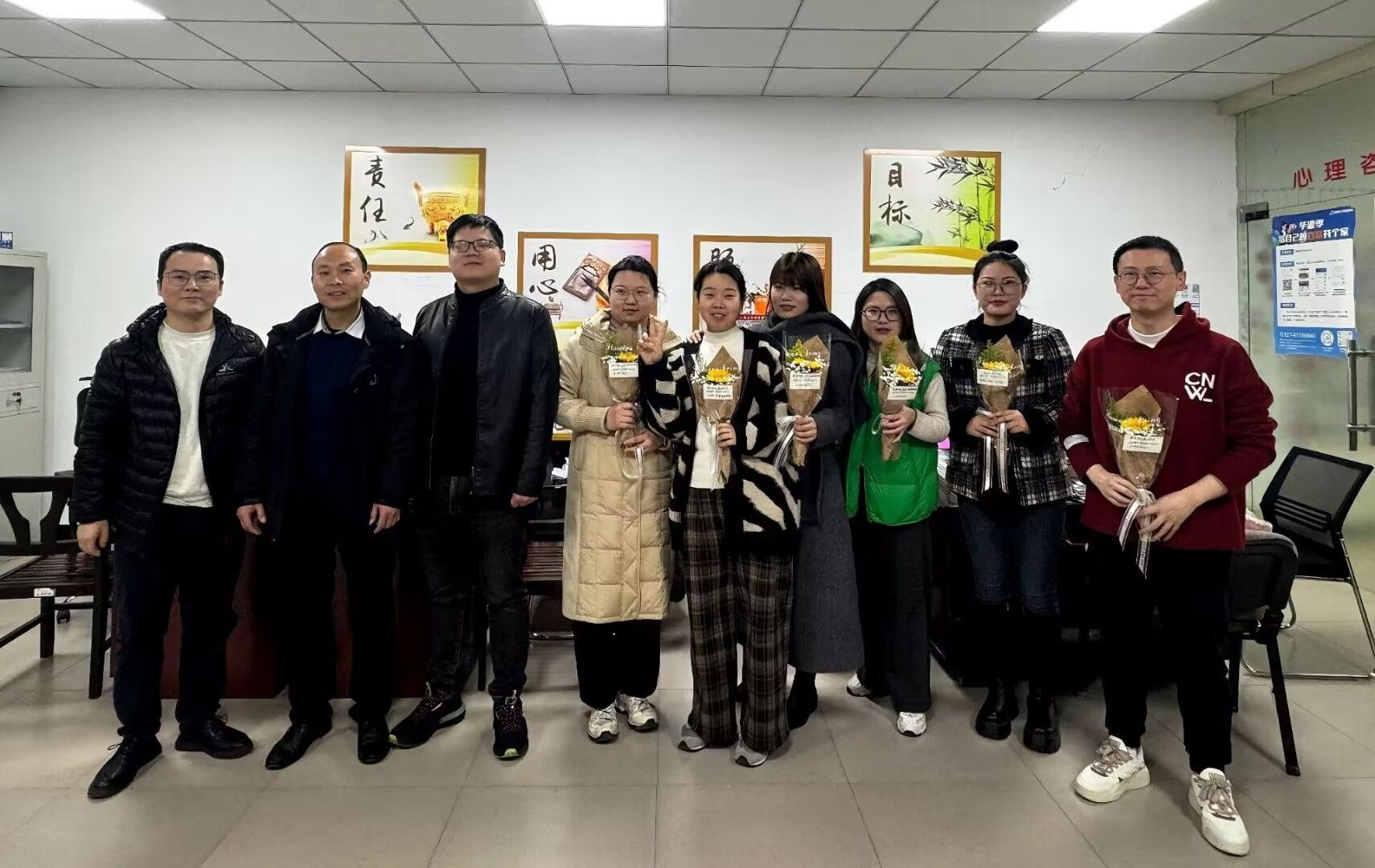 学院领导们面带和蔼的笑容,迈着稳健的步伐,依次走向每一位女教师。在庄重的递送过程中,领导真诚地说道:“各位老师,今天是属于你们的节日,感谢你们一直以来为学院、为学生付出的辛勤努力。这束向日葵代表学院对你们的肯定与祝福,希望你们如这花儿一般,永远向着光明,在教育领域持续绽放光彩。”话语虽简洁,却字字铿锵,饱含深情。此外,学院心理工作室为学院的全体女老师送上心意小礼,感谢老师们用智慧和温暖守护学生心灵成长。