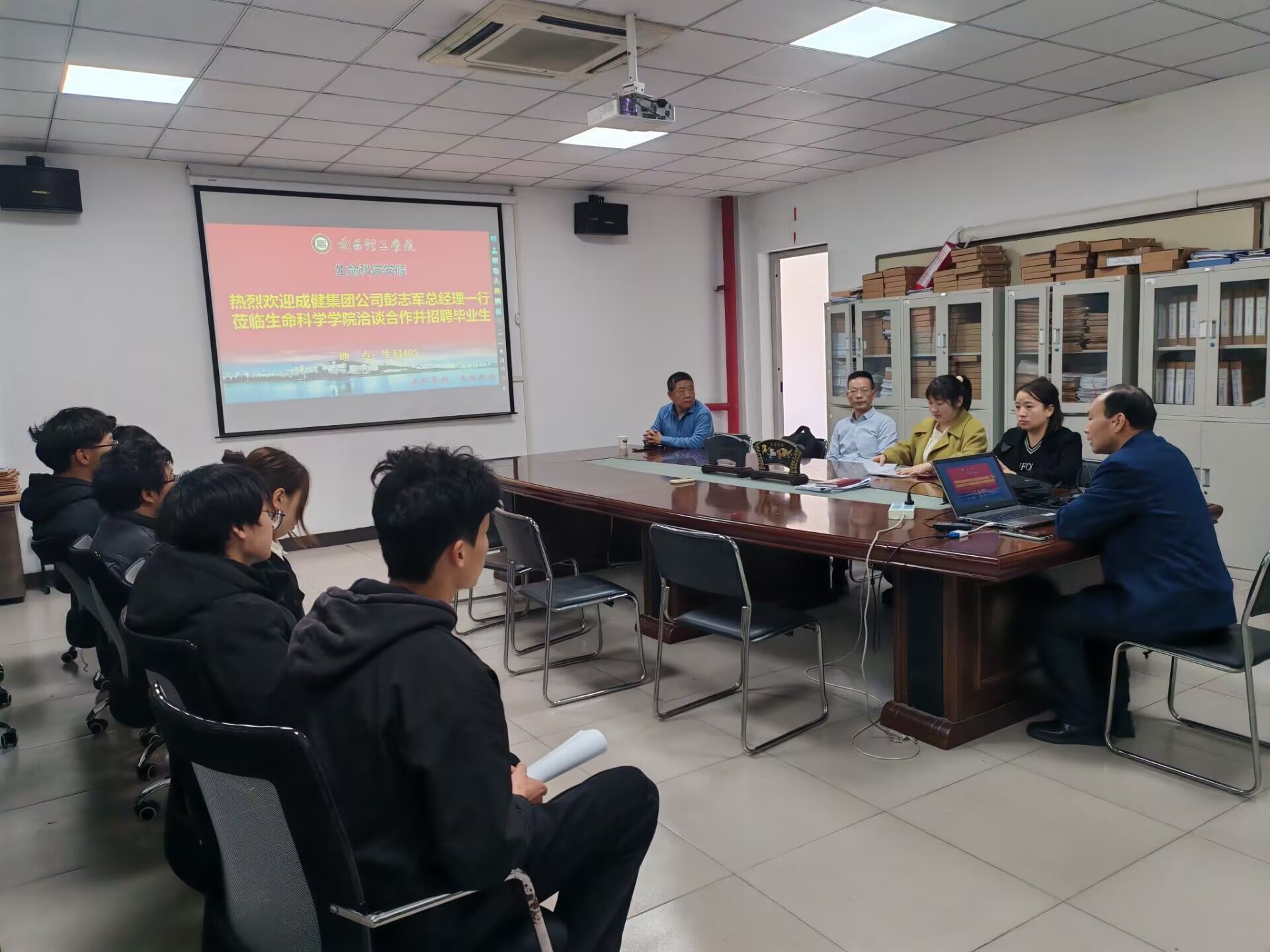 团委网3月20日消息(通讯员 方艳丽 报道)为加强武昌理工学院生命科学学院与医药企业的合作、推动生命科学学院毕业学子高质量就业,生命科学学院于3月19日下午在生命科学学院405会议室举办联合招聘活动。成健药业集团公司彭志军总经理一行四人莅临生命科学学院洽谈合作,武昌理工学院副校长崔海容、生命科学学院党总支书记胡瑞年、毕业班年级组长及素质导师徐琳琳、实践教学副院长王小华副教授、生命科学学院团委书记范胜共同出席本次招聘活动。